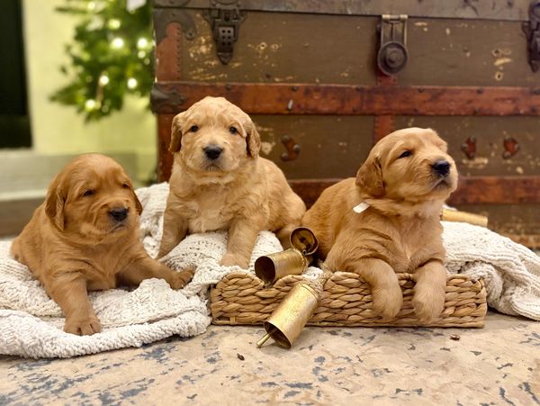 Remy x Ransom are one of the darkest golden pairings you'll find! Their health, temperament, & gorgeous coats produce amazing puppies! We're thrilled to be continuing this line with our very own Willow one day.